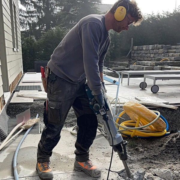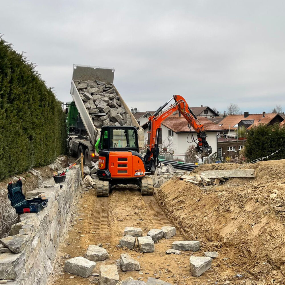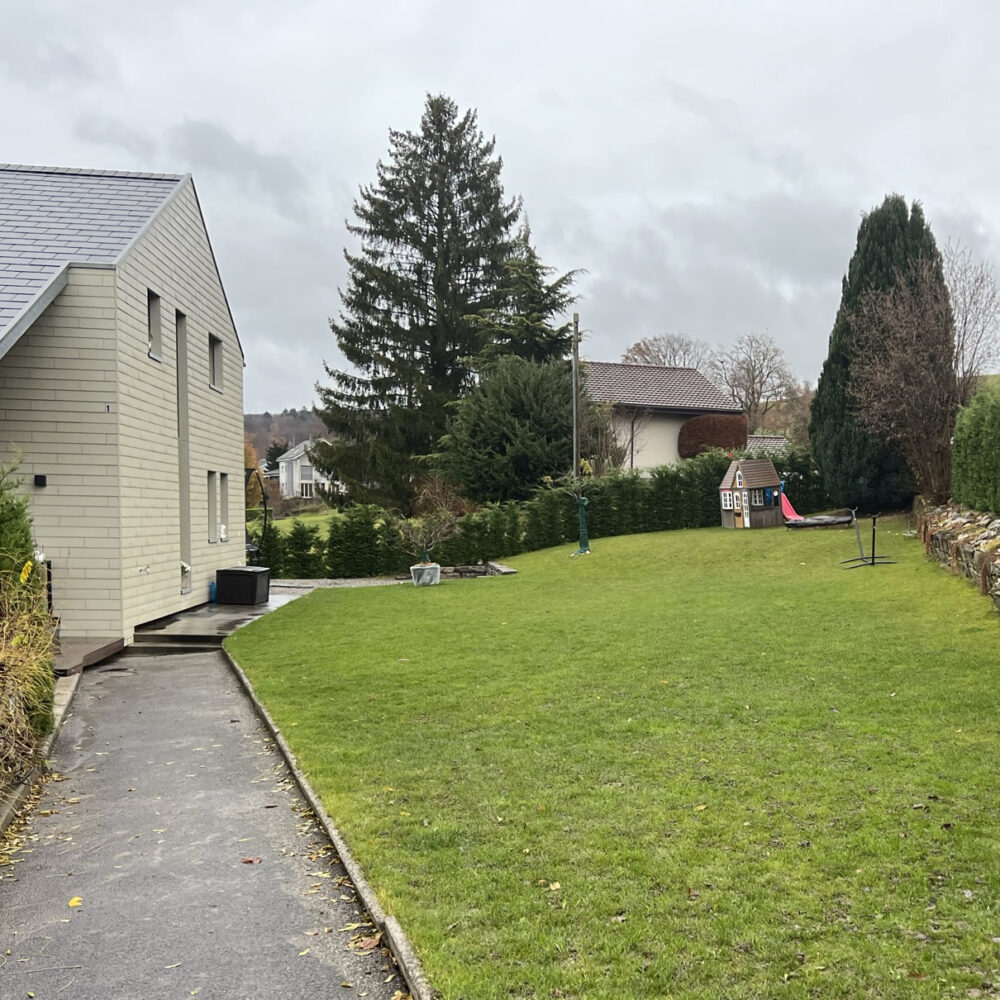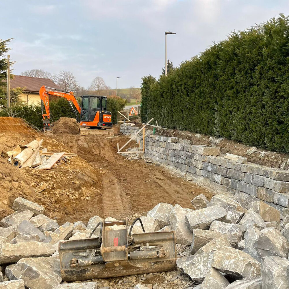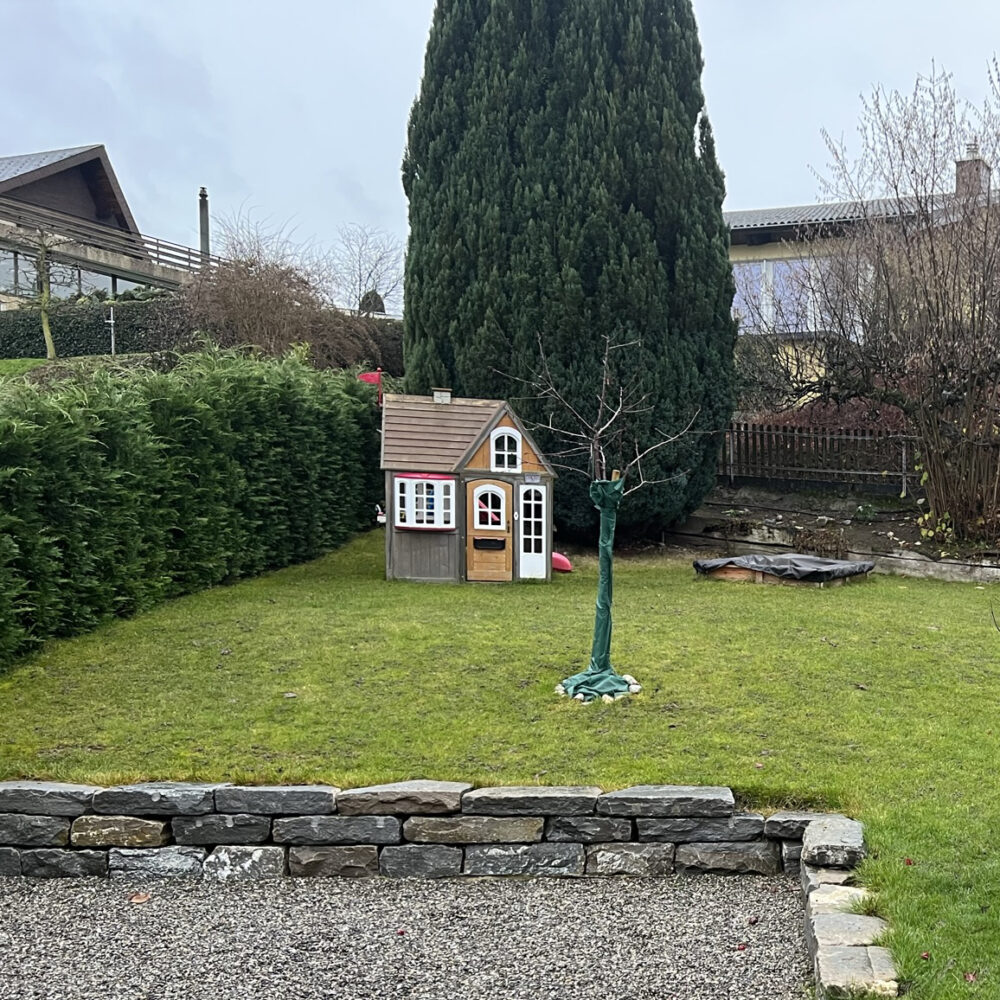 Der Garten in Kirchberg erlebte eine beeindruckende Verwandlung. Eine komplett neue Poolanlage wurde errichtet, die zusammen mit einer sanierten Schwellenmauer eine einladende Atmosphäre schafft. Dabei kamen 50 Tonnen Plasselper Mauersteine aus der malerischen Gemeinde Plasselp im Kanton Freiburg zum Einsatz, die dem Projekt sowohl Stabilität als auch einen rustikalen Charme verleihen.