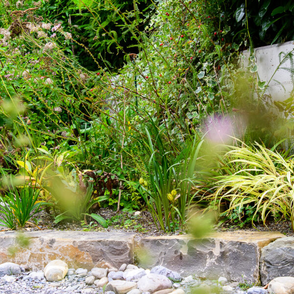 Pflege der Bepflanzung: Sorgfältige Pflege von Stauden, Sträuchern und Gräsern.